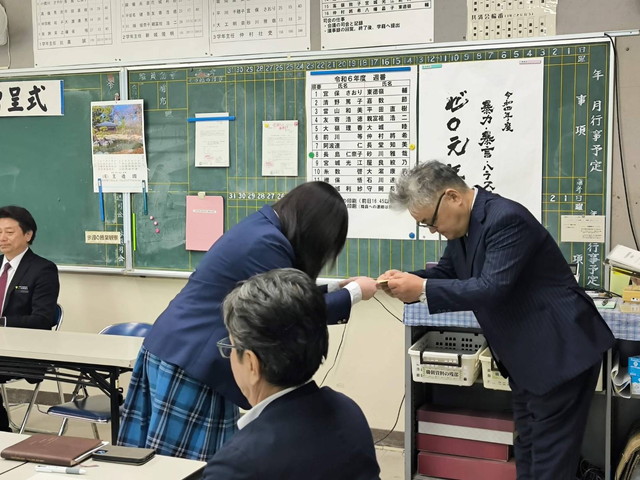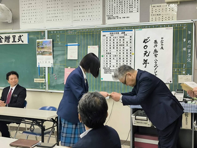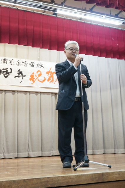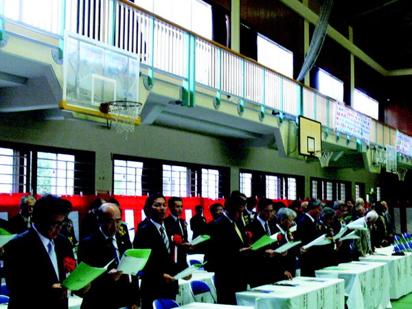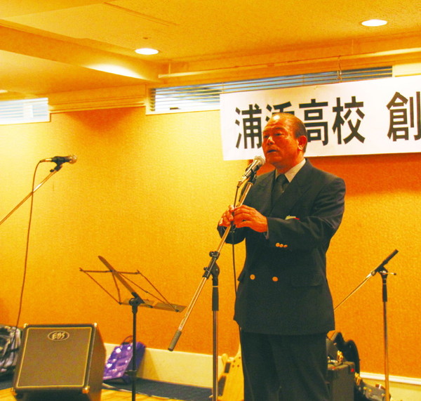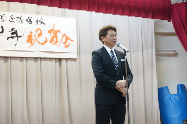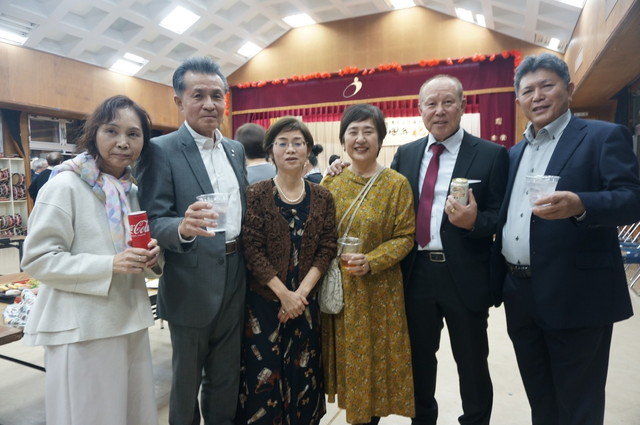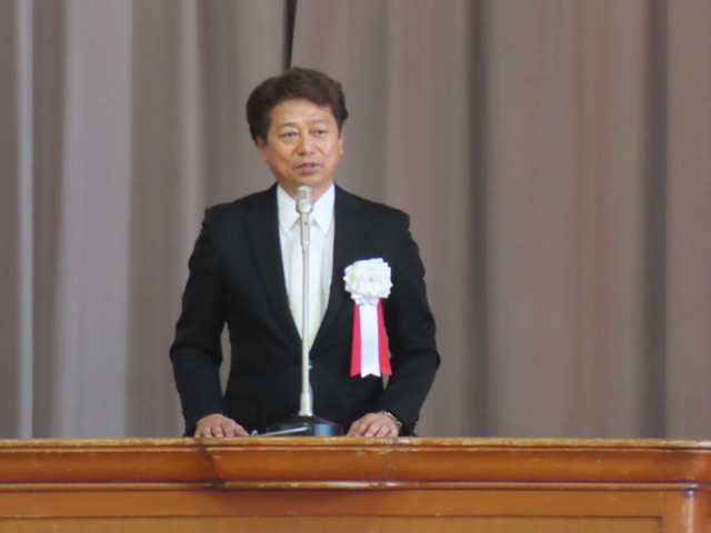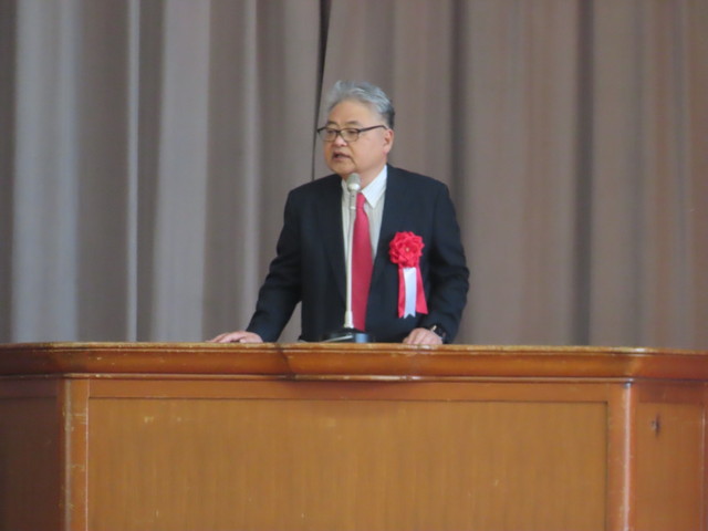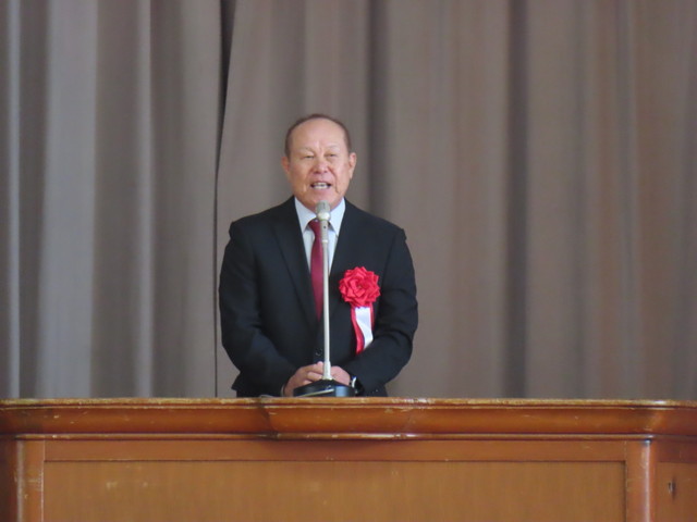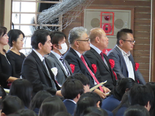 - 学校から校長先生、教頭先生、PTA会長、支援会会長、OB多数